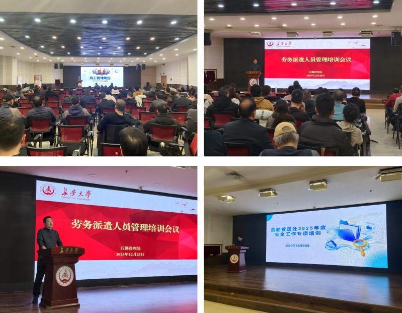 12月25日,后勤管理处在北校区大学生活动中心多功能厅组织召开劳务派遣人员管理与安全专题培训会。后勤管理处相关科级干部,各科室(中心)劳务派遣人员中的一线班组长、基层员工代表、管理员,陕西凡卓人力资源公司工作人员等70余人参加本次培训会。
